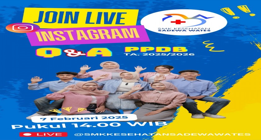 Yuk kepoin PPDB SMK Kesehatan Sadewa Wates di live Instagram @SMKKESEHATANSADEWAWATES pada Jumat, 7 Februari 2025 pukul 14.00 WIB
