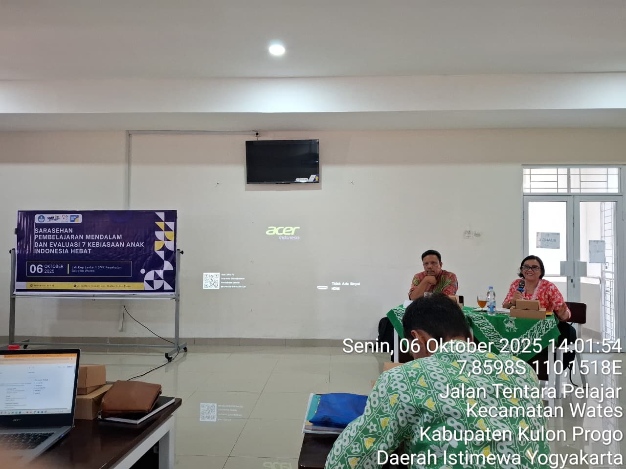 Wates, 6 Oktober 2025 – SMK Kesehatan Sadewa Wates sukses menyelenggarakan Sarasehan Pembelajaran Mendalam sebagai bagian dari implementasi program SMK Pusat Keunggulan Skema Penguatan Pembelajaran Mendalam. Kegiatan ini berlangsung di Ruang Pembelajaran Lantai 2 pada Senin (6/10) pukul 12.30–15.00 WIB dengan dihadiri guru, karyawan, serta tamu undangan.